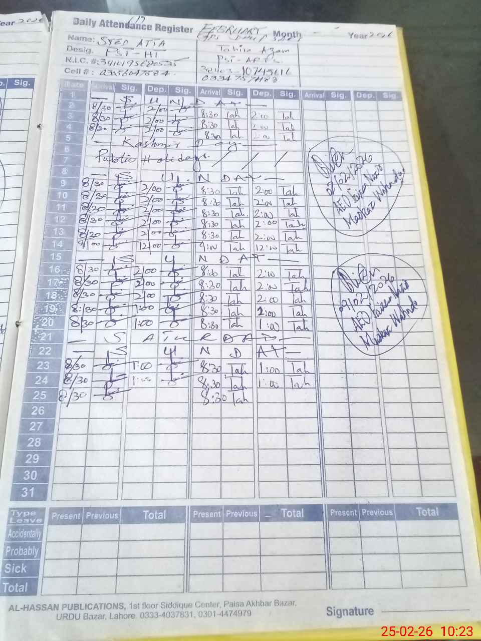 | Name: SY**** AT**** JI**** Designation: (School Headmaster's/Headmistress's) ESE Phone/Cell Number: 03**** |
