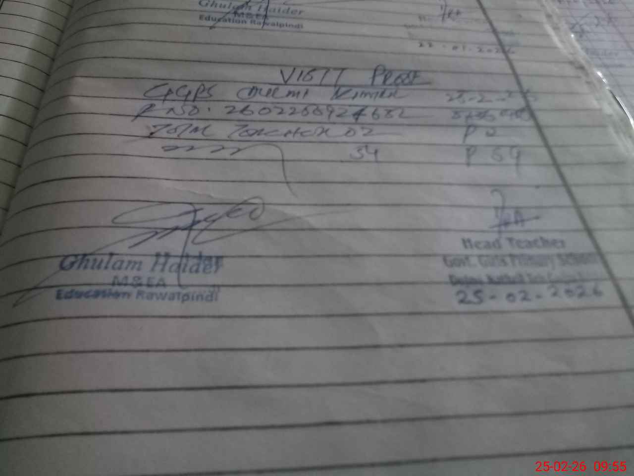 | Name: If**** Qu**** Designation: (School Headmaster's/Headmistress's) PST Phone/Cell Number: 03**** |