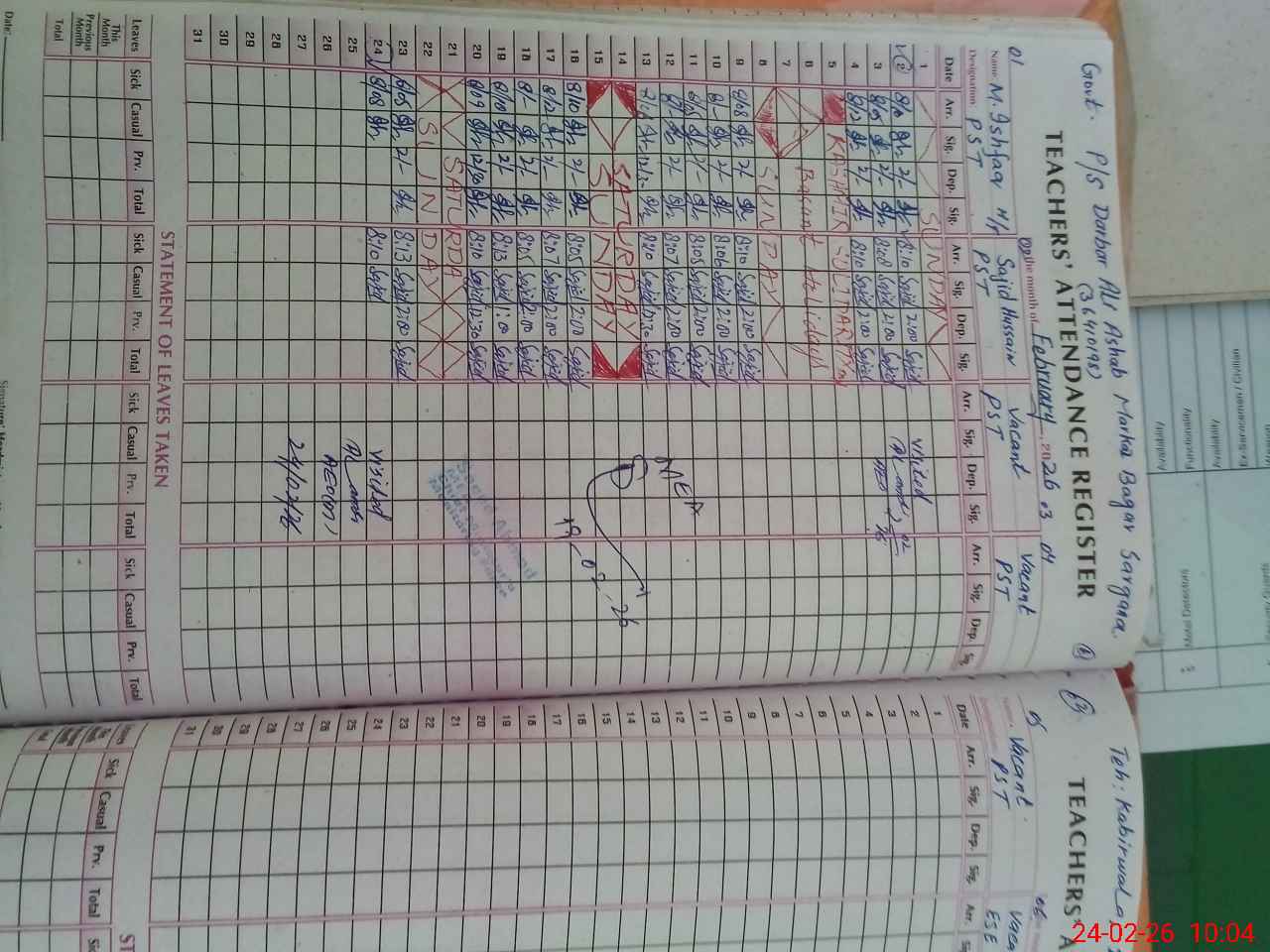 | Leave | Duty | Absent | Maternity | Medical | Ex- Pak |
