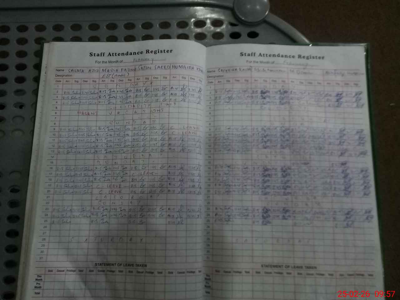 | Leave | Duty | Absent | Maternity | Medical | Ex- Pak |