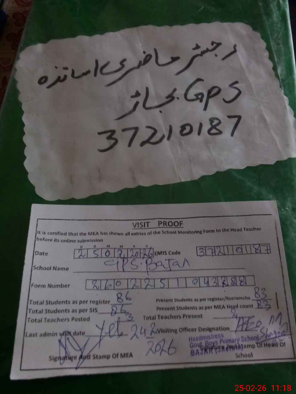 | EMIS Code: 37210187 | Name of School: GPS BAJAR | |||