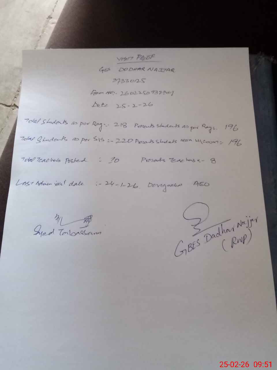| EMIS Code: 37330125 | Name of School: GES DODHAR NAJJAR | |||
