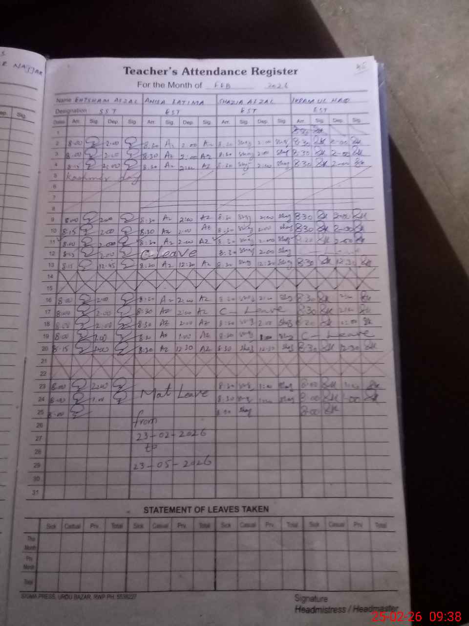 | 61**** | An**** Fa**** | EST Science | Regular | 0 | 0 | 0 | 0 | 0 | 0 | 0 | 0 | 0 | Maternity |
