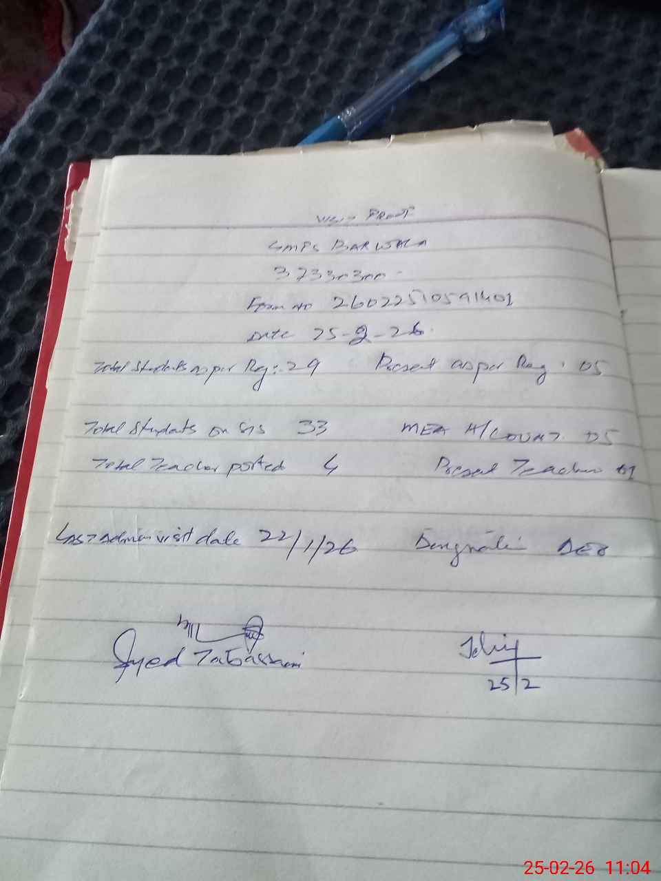| Attendance Register | Head Teacher | MEA with School | Visit Proof |