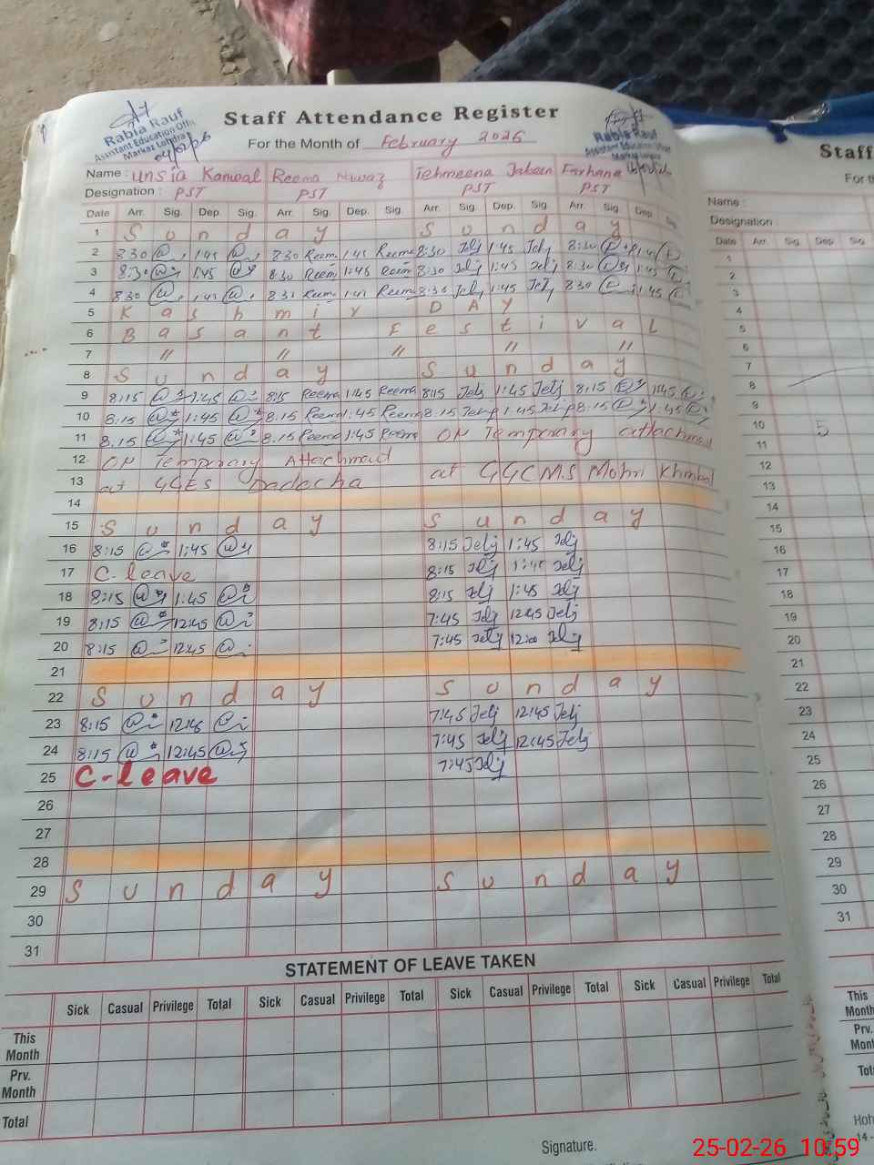 | 37**** | Un**** Ka**** | PST Arts | Regular | 0 | 0 | 0 | 0 | 0 | 0 | 0 | 0 | 0 | Casual |