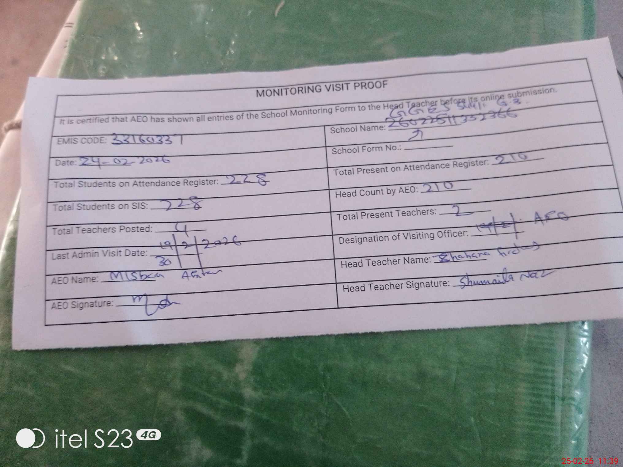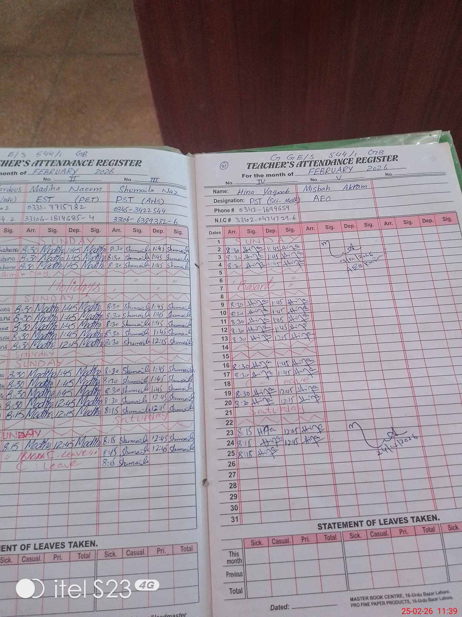 | Name: SH**** FA**** Designation: (School Headmaster's/Headmistress's) EST (GENERAL ) Phone/Cell Number: 03**** |