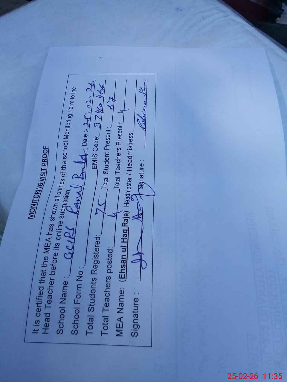 | EMIS Code: 37410466 | Name of School: GGPS RAWAL BALA | |||