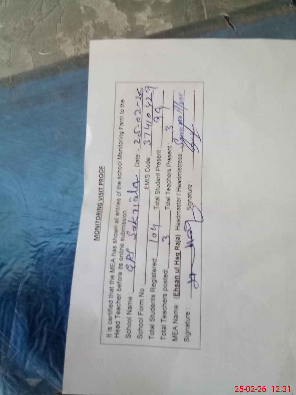 | EMIS Code: 37410429 | Name of School: GPS SAKRIALA | |||