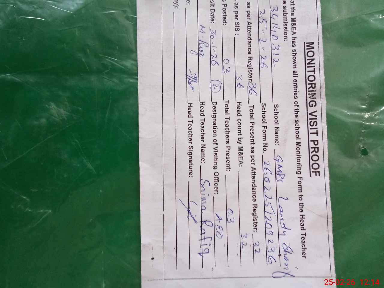 | EMIS Code: 34140312 | Name of School: GMPS LANDAY SHARIF | |||