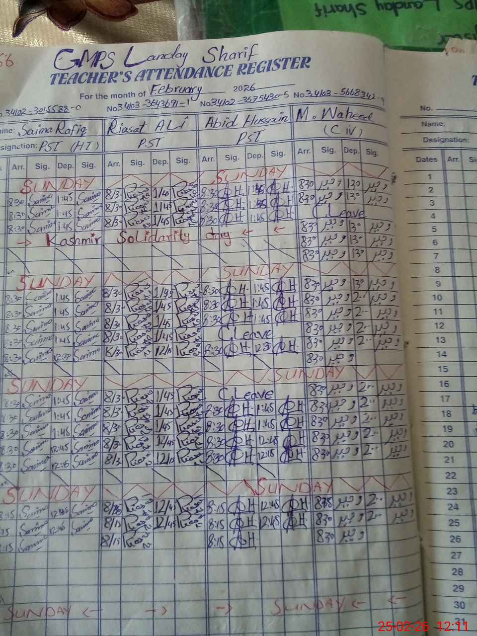 | Name: SA**** RA**** Designation: (School Headmaster's/Headmistress's) PST Phone/Cell Number: 03**** |