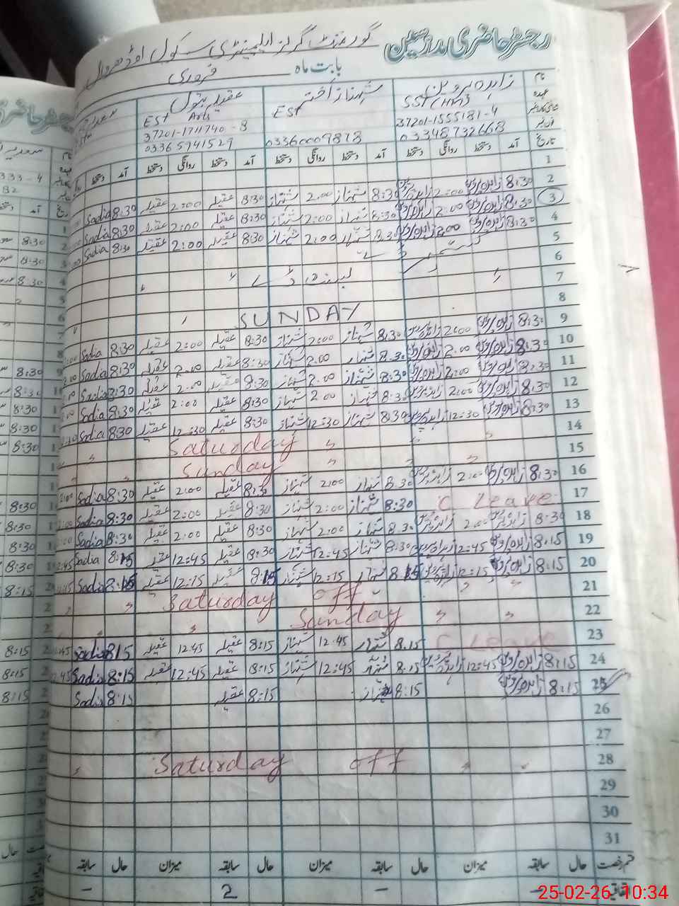 | Name: Za**** Pa**** Designation: (School Headmaster's/Headmistress's) Headmistress Phone/Cell Number: 03**** |