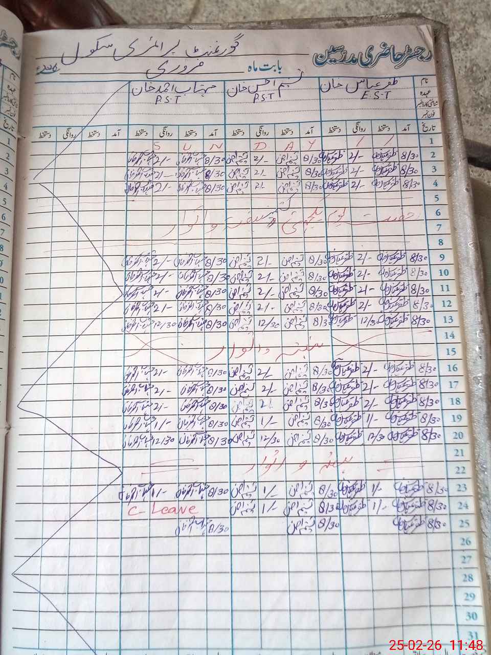 | CNIC | Full Name | Designation | R/C | Absence During Last Calender Month |