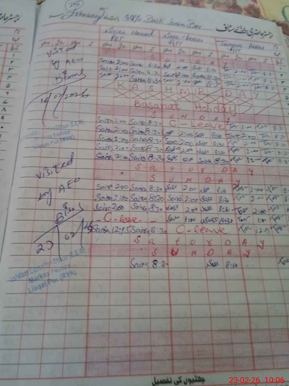 | Monitoring Date: 23-02-2026 | Start Time: 23-02-2026 09:45 AM | End Time: 23-02-2026 10:21 AM | Name of MEA: Bi**** Kh**** | |