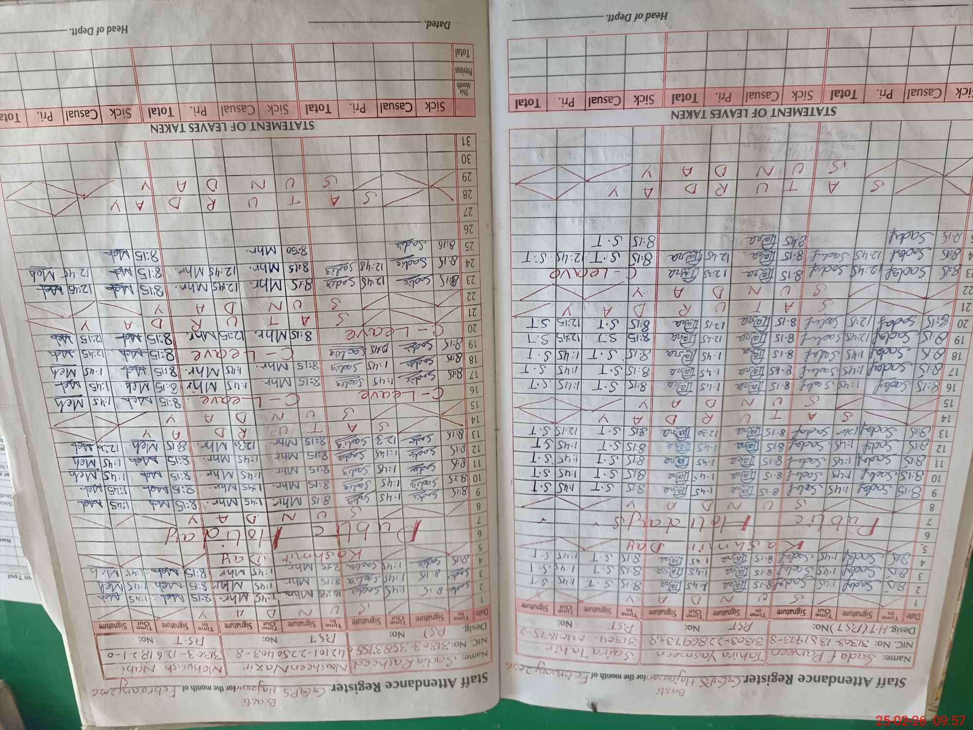 | CNIC | Full Name | Designation | R/C | Absence During Last Calender Month |
