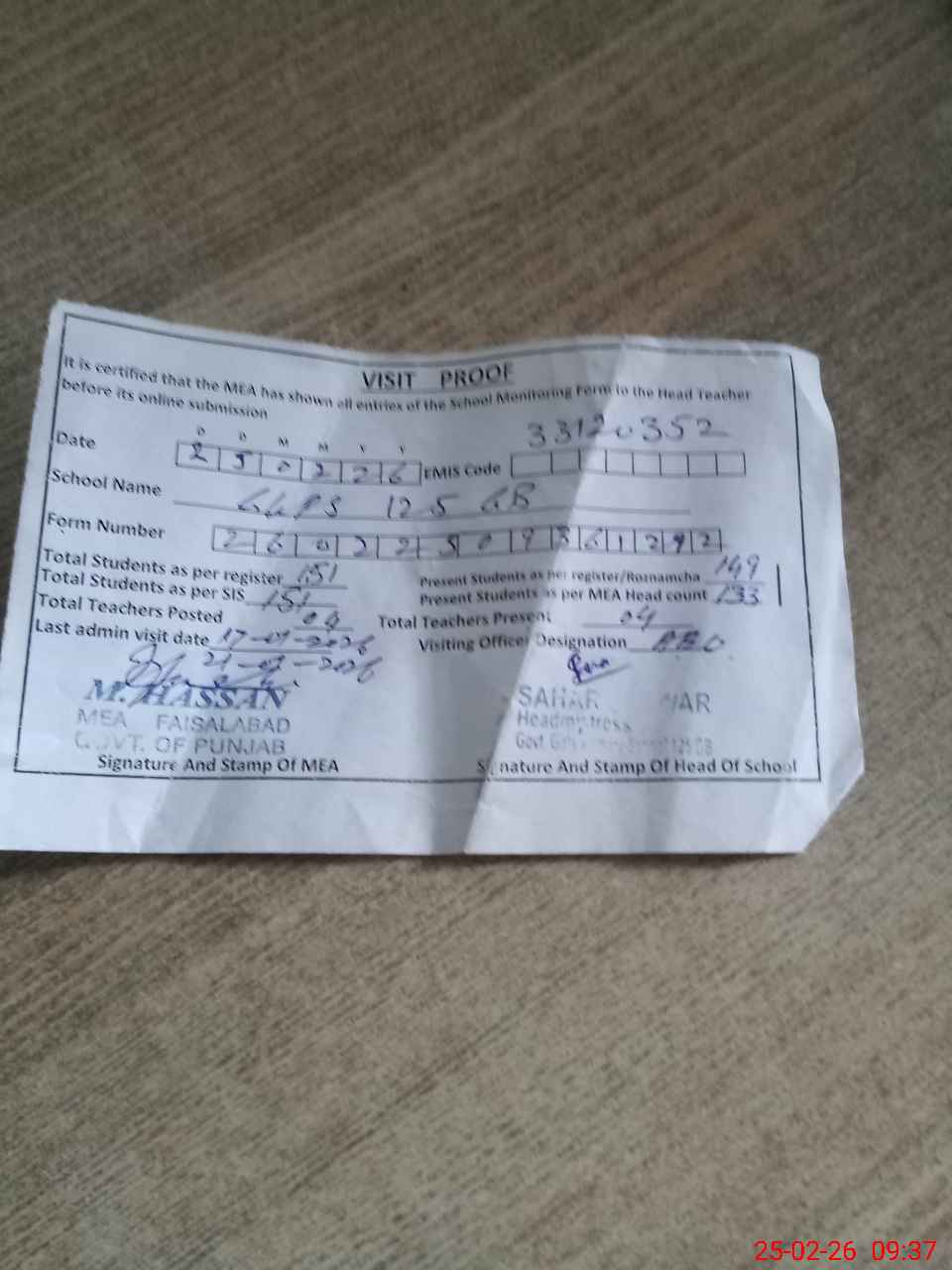 | EMIS Code: 33120352 | Name of School: GGPS 125 GARB | |||