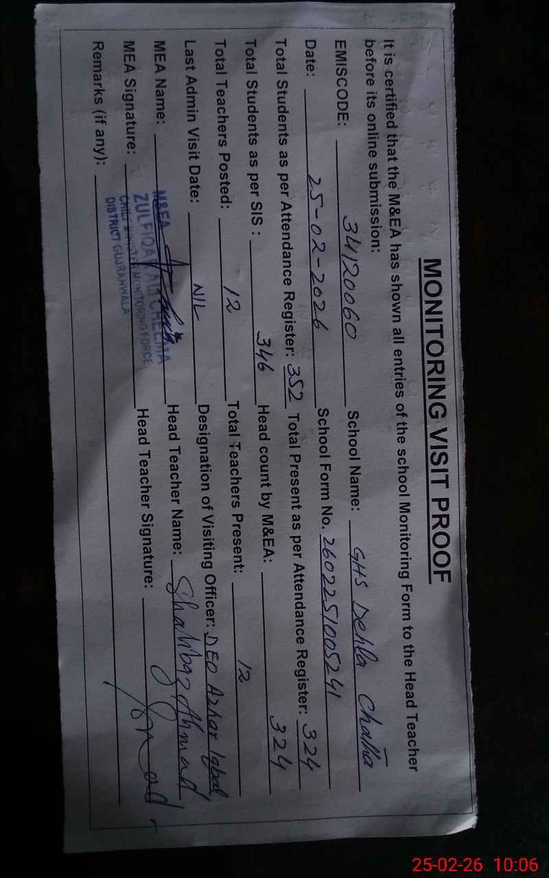 | EMIS Code: 34120060 | Name of School: GHS DEHLA CHATHA | |||