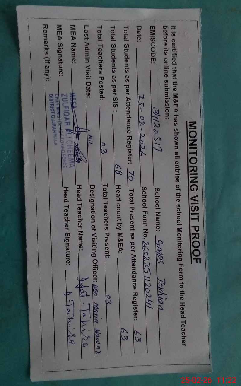 | EMIS Code: 34120519 | Name of School: GMPS JOKHIAN | |||