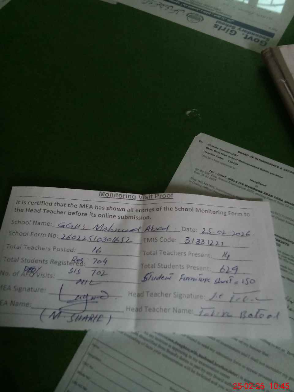 | EMIS Code: 31331221 | Name of School: GGHS MEHMOOD ABAD | |||