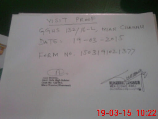 | EMIS Code: 36430104 | Name of School: GGHS 132/16-L, MIAN CHANNU | |||