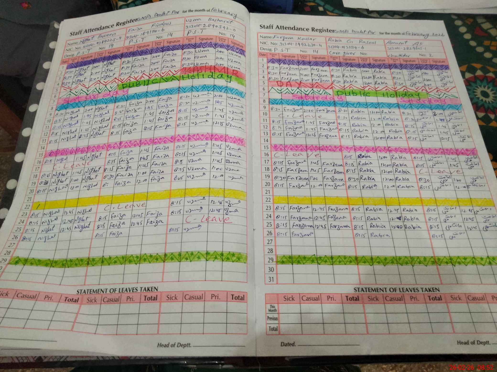 | Leave | Duty | Absent | Maternity | Medical | Ex- Pak |