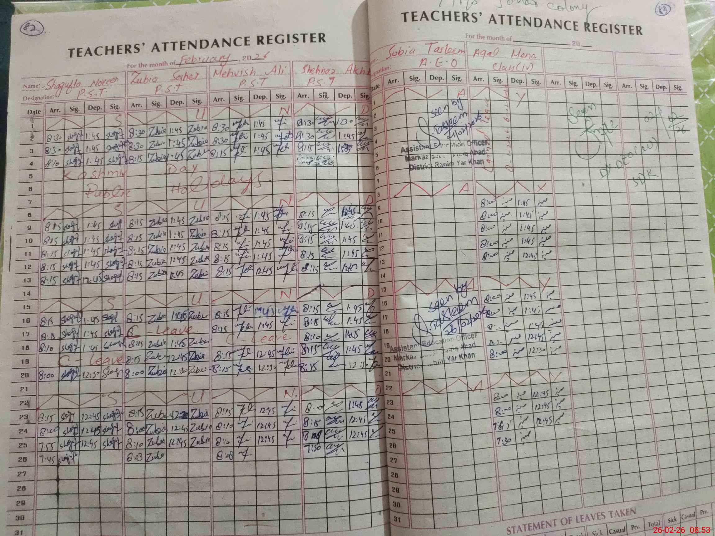 | Leave | Duty | Absent | Maternity | Medical | Ex- Pak |