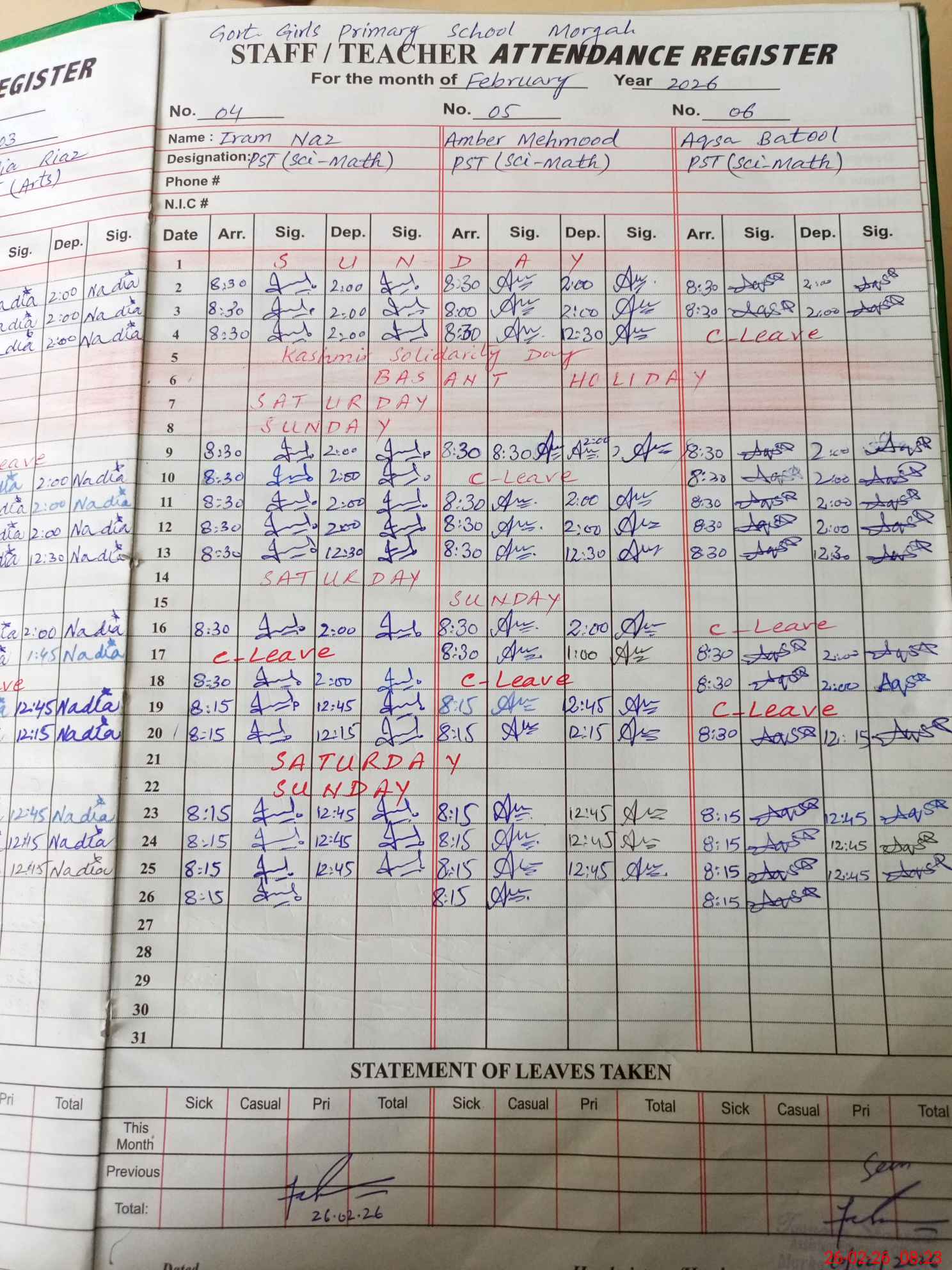 | Leave | Duty | Absent | Maternity | Medical | Ex- Pak |