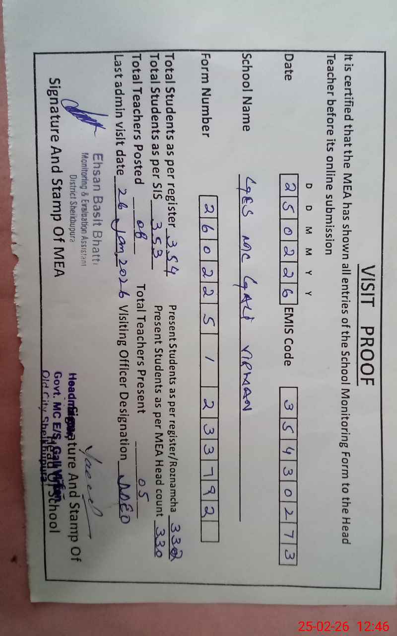 | Certified that this School was Inspected by the Undersigned MEA/DMO Today and the Information Stated Above is as Per Record. | |||||