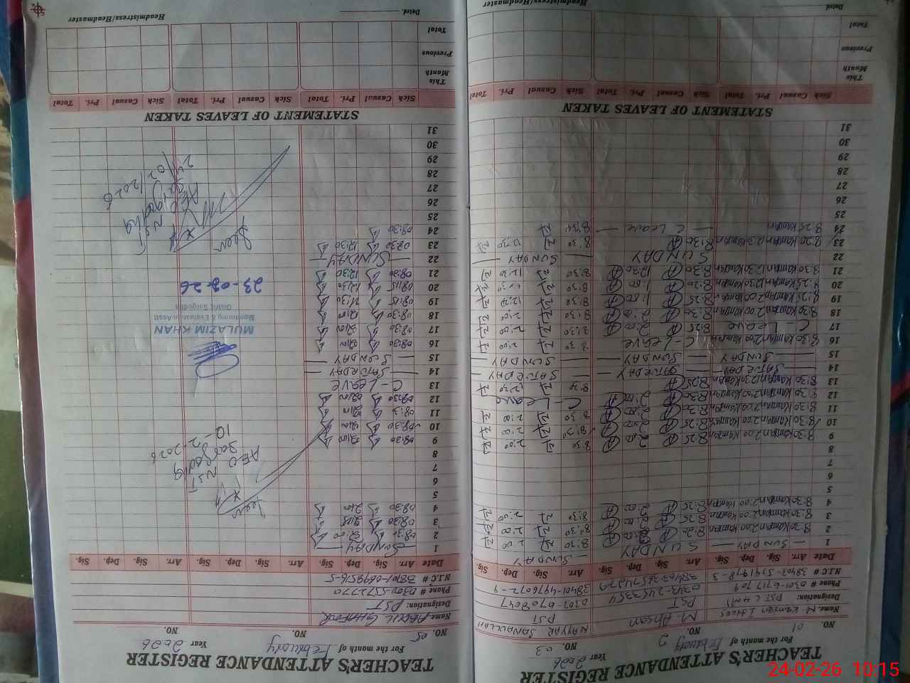| Name: MU**** AH**** Designation: (School Headmaster's/Headmistress's) PST Phone/Cell Number: 03**** |