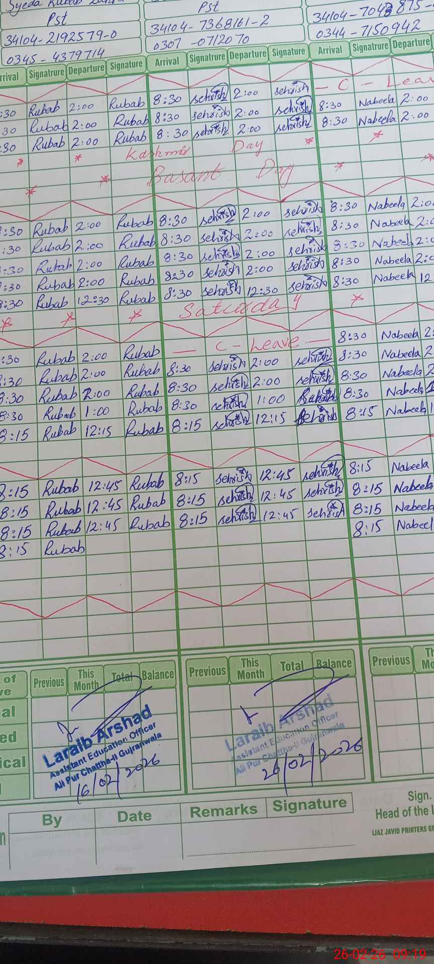 | Name: Sy**** Ru**** Za**** Designation: (School Headmaster's/Headmistress's) PST/PTC/JV Phone/Cell Number: 03**** |