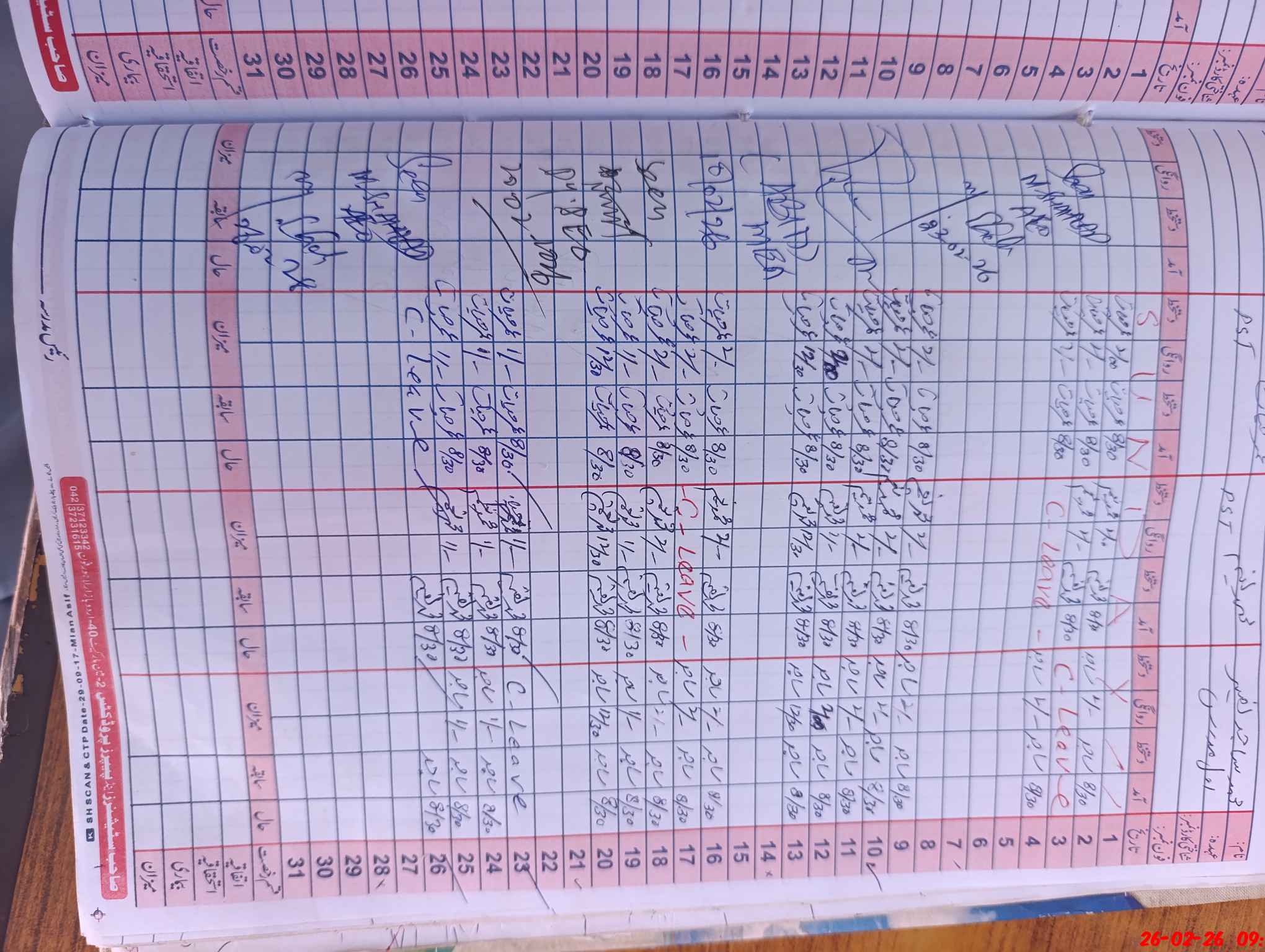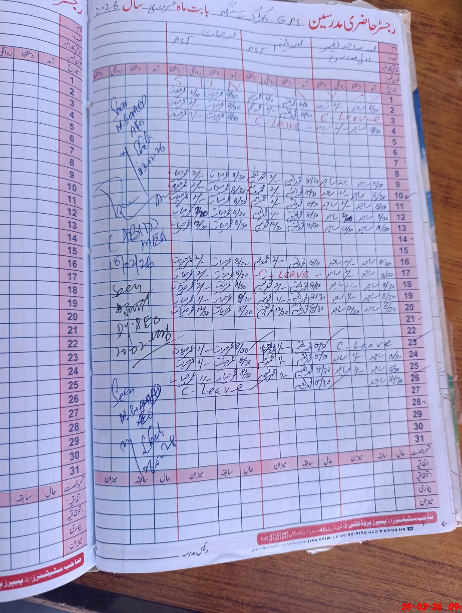 | CNIC | Full Name | Designation | R/C | Absence During Last Calender Month |