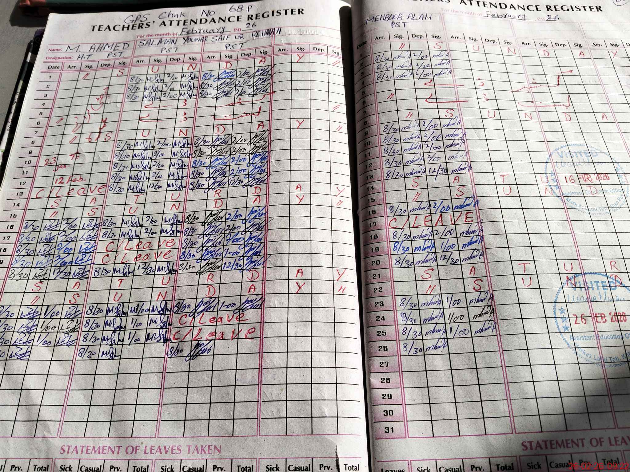 | Attendance Register | Head Teacher | MEA with School | Visit Proof |