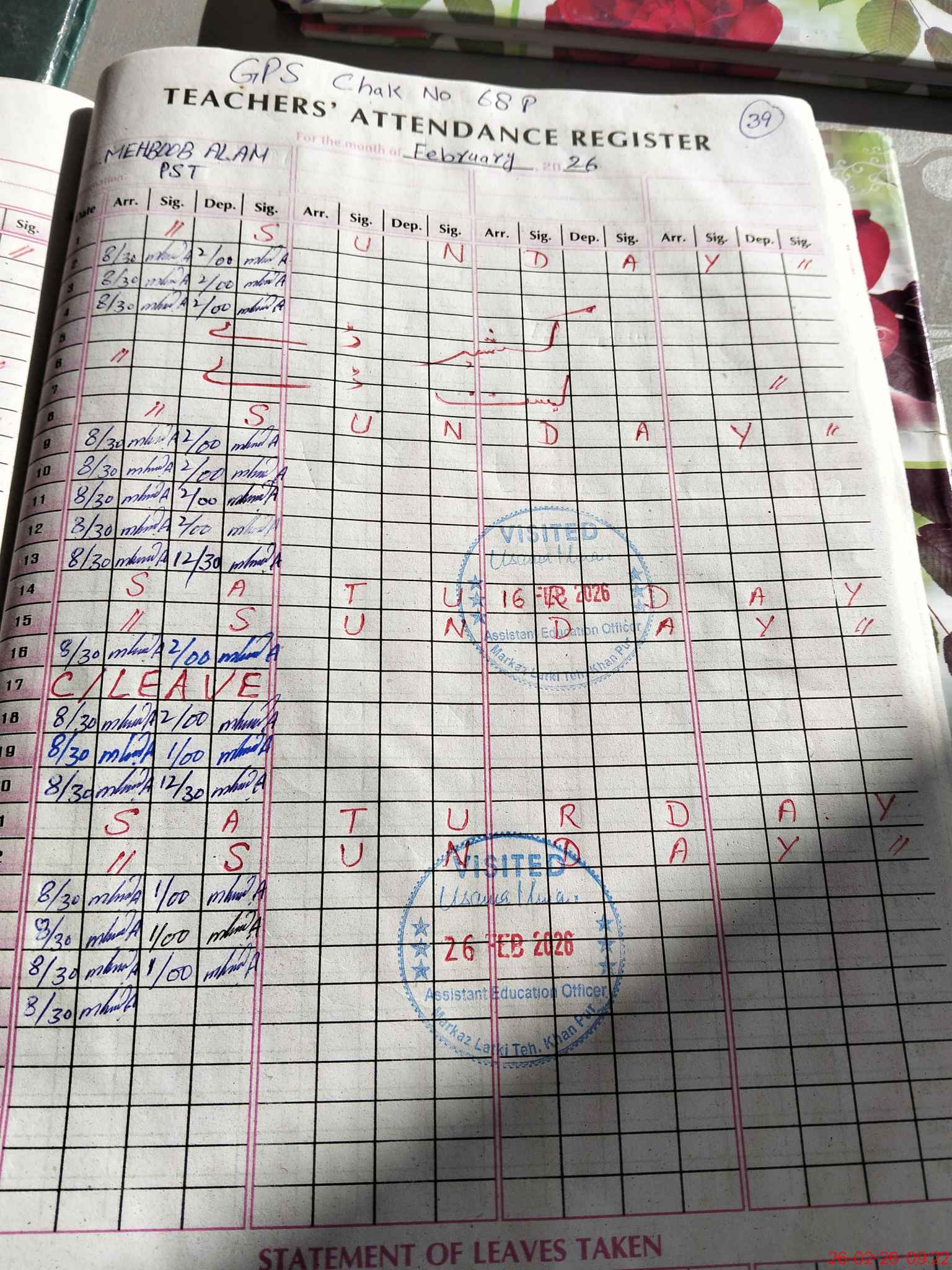 | EMIS Code: 31310233 | Name of School: GPS CHAK NO 68 P | |||
