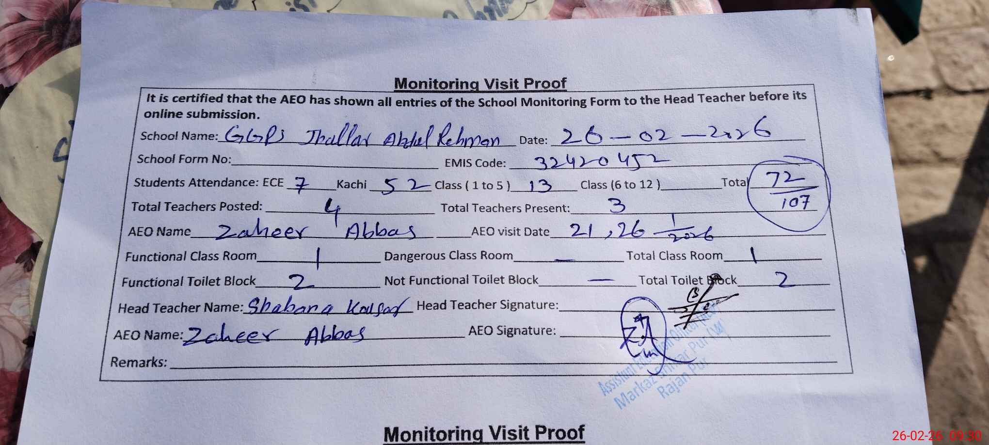 | EMIS Code: 32420452 | Name of School: GGPS JHALLAR ABDUL REHMAN | |||