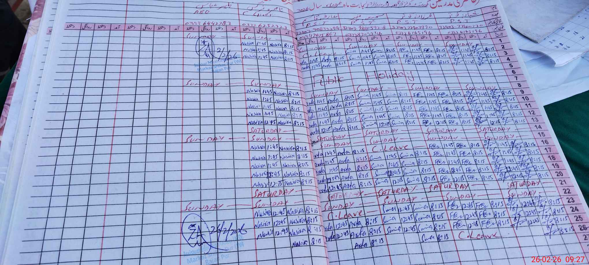 | 32**** | Fa**** Ko**** | PST Science/Maths | Regular | 0 | 0 | 0 | 0 | 0 | 0 | 0 | 0 | 0 | Casual |