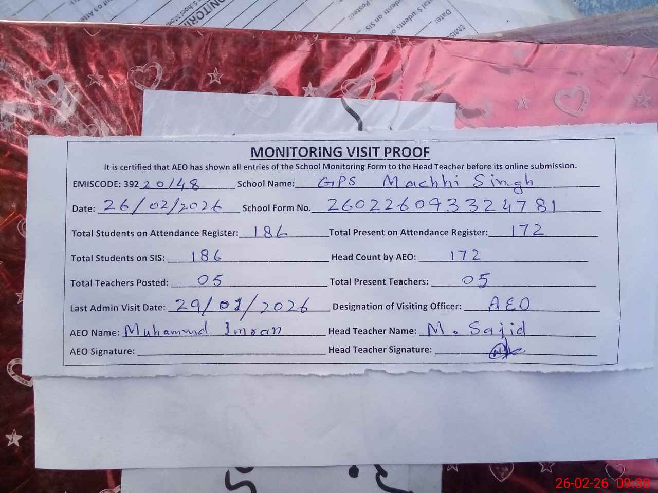 | EMIS Code: 39220148 | Name of School: GPS MACHHI SINGH | |||