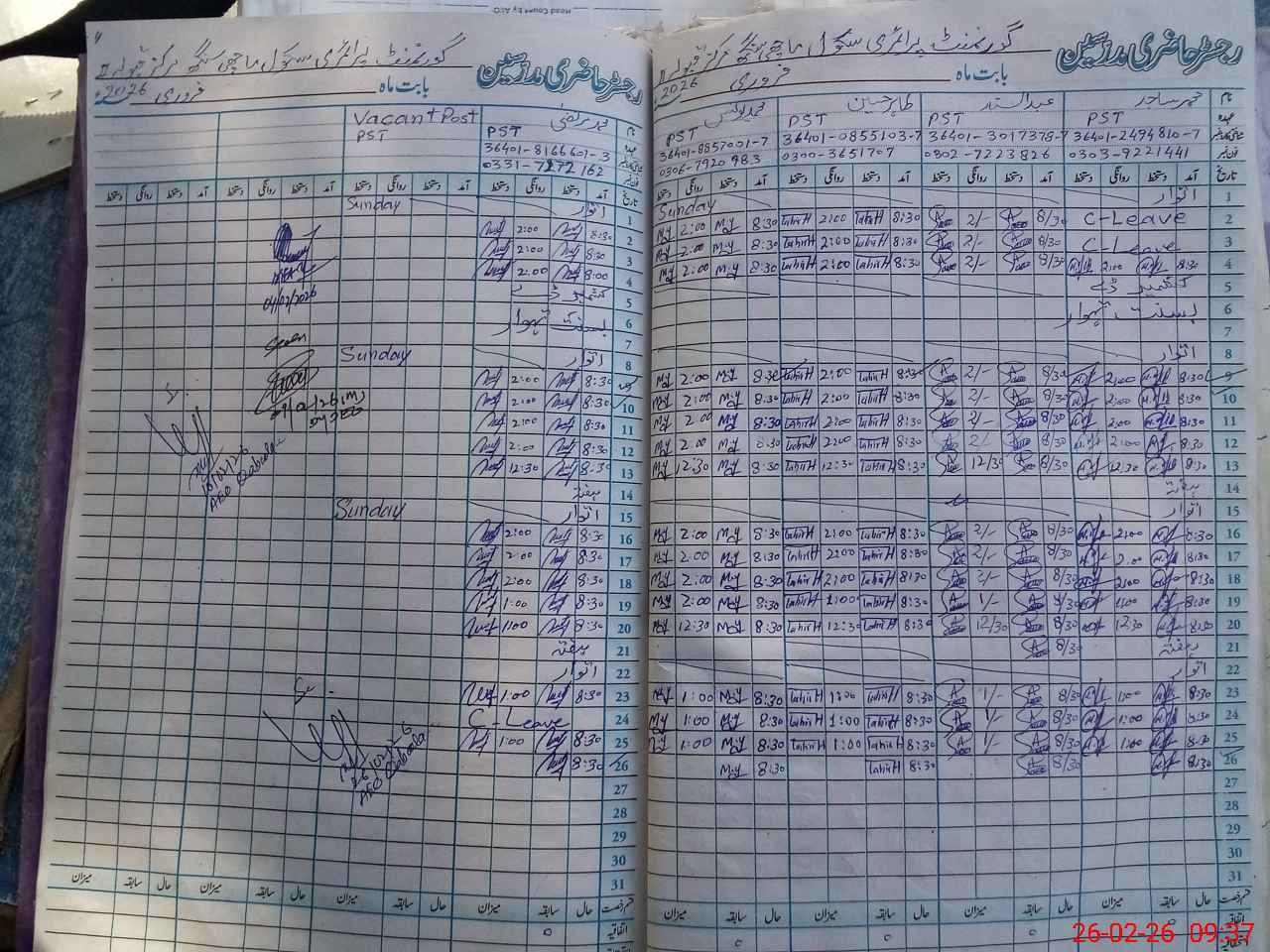 | Name: MU**** SA**** Designation: (School Headmaster's/Headmistress's) PST Phone/Cell Number: 03**** |