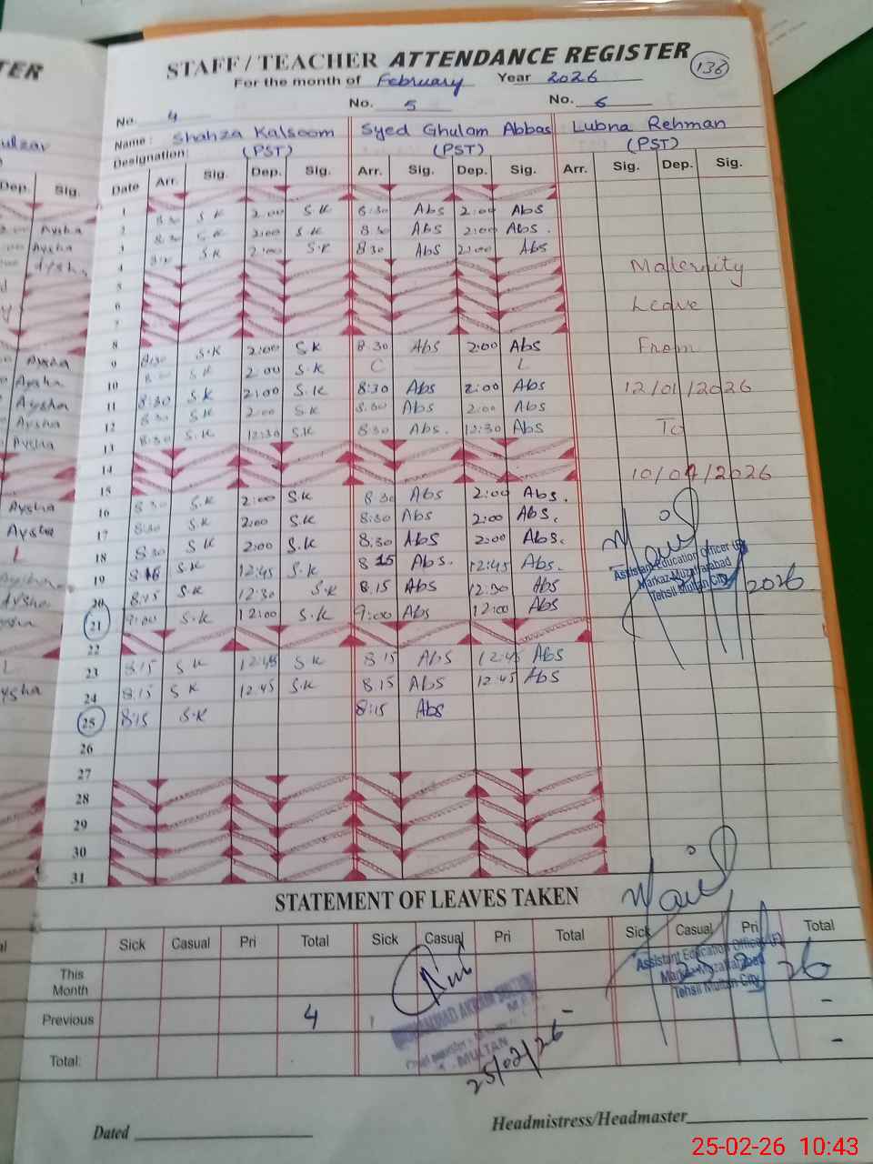 | 36**** | Lu**** Re**** | PST Science/Maths | Regular | 0 | 0 | 0 | 0 | 0 | 0 | 0 | 0 | 0 | Maternity |