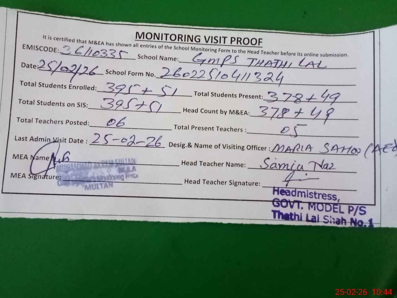 | EMIS Code: 36110335 | Name of School: GMPS THATHI LAL | |||