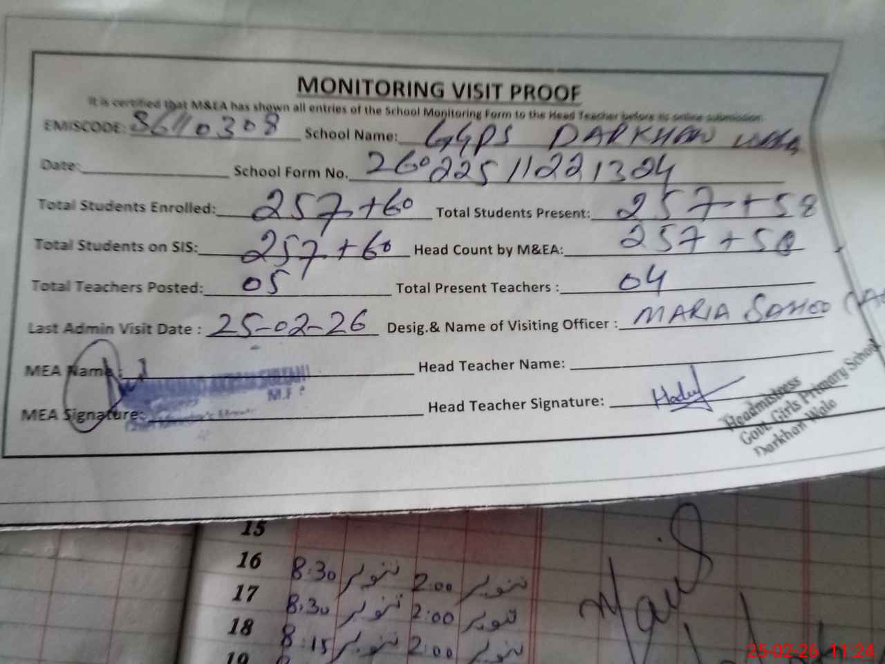 | EMIS Code: 36110308 | Name of School: GGPS DARKHAN WALA SHER SHAH ROAD | |||
