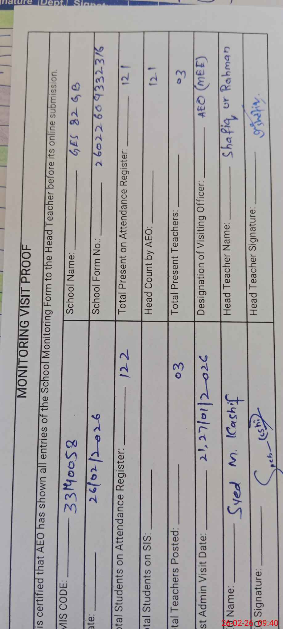 | Monitoring Date: 26-02-2026 | Start Time: 26-02-2026 09:04 AM | End Time: 26-02-2026 09:40 AM | Name of MEA: Sy**** M.Ka**** | |