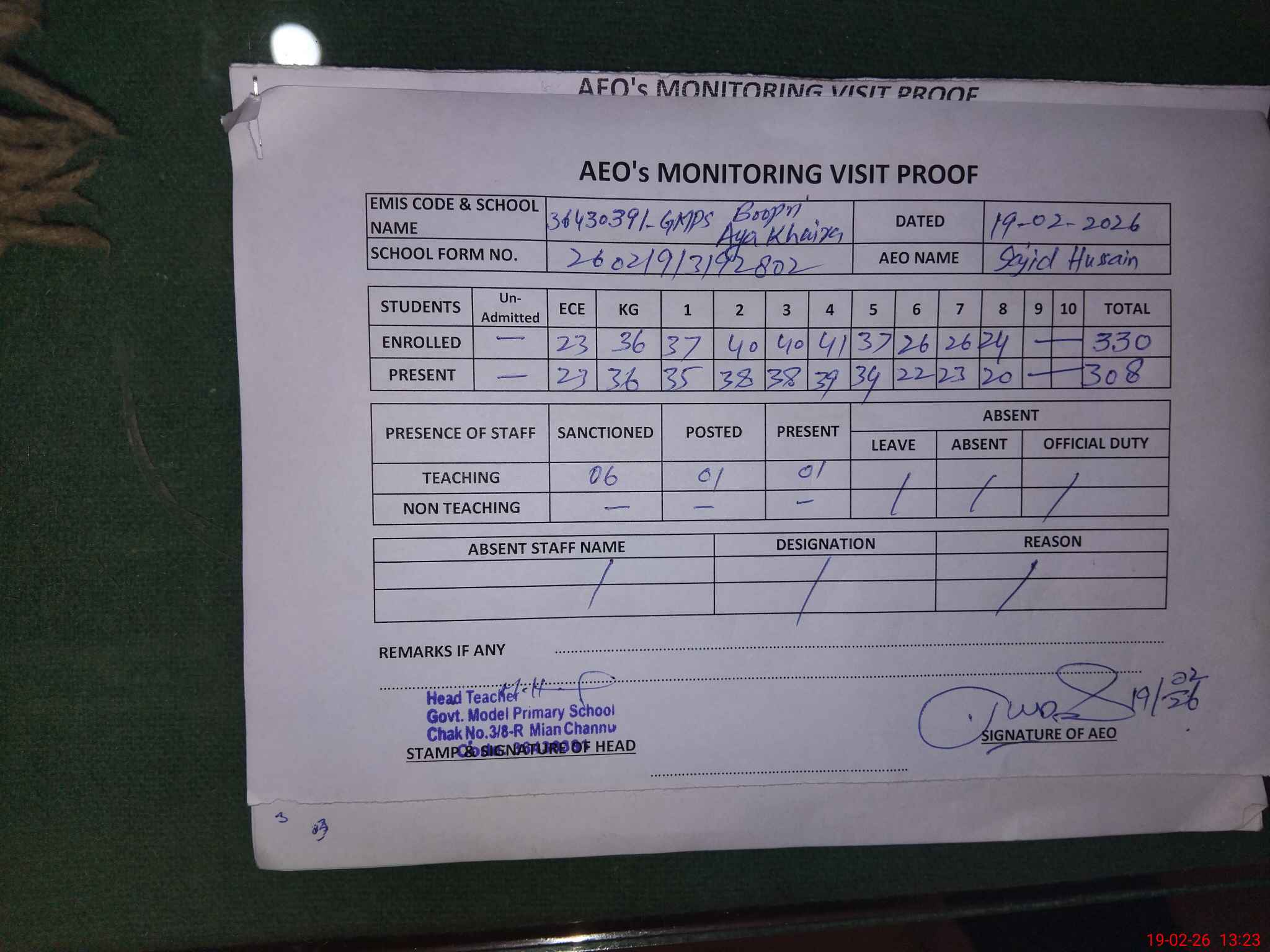 | Certified that this School was Inspected by the Undersigned MEA/DMO Today and the Information Stated Above is as Per Record. | |||||