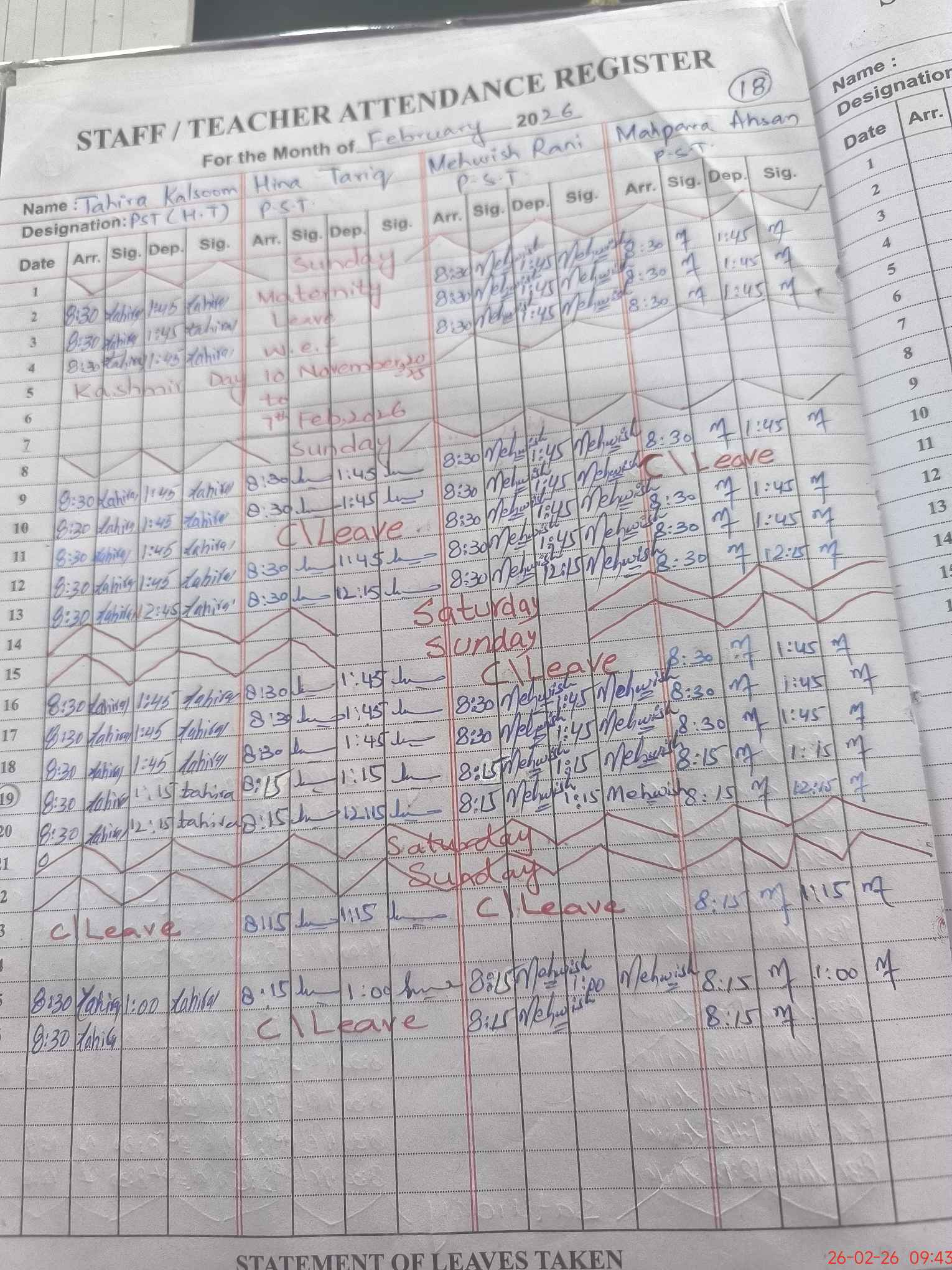 | Leave | Duty | Absent | Maternity | Medical | Ex- Pak |