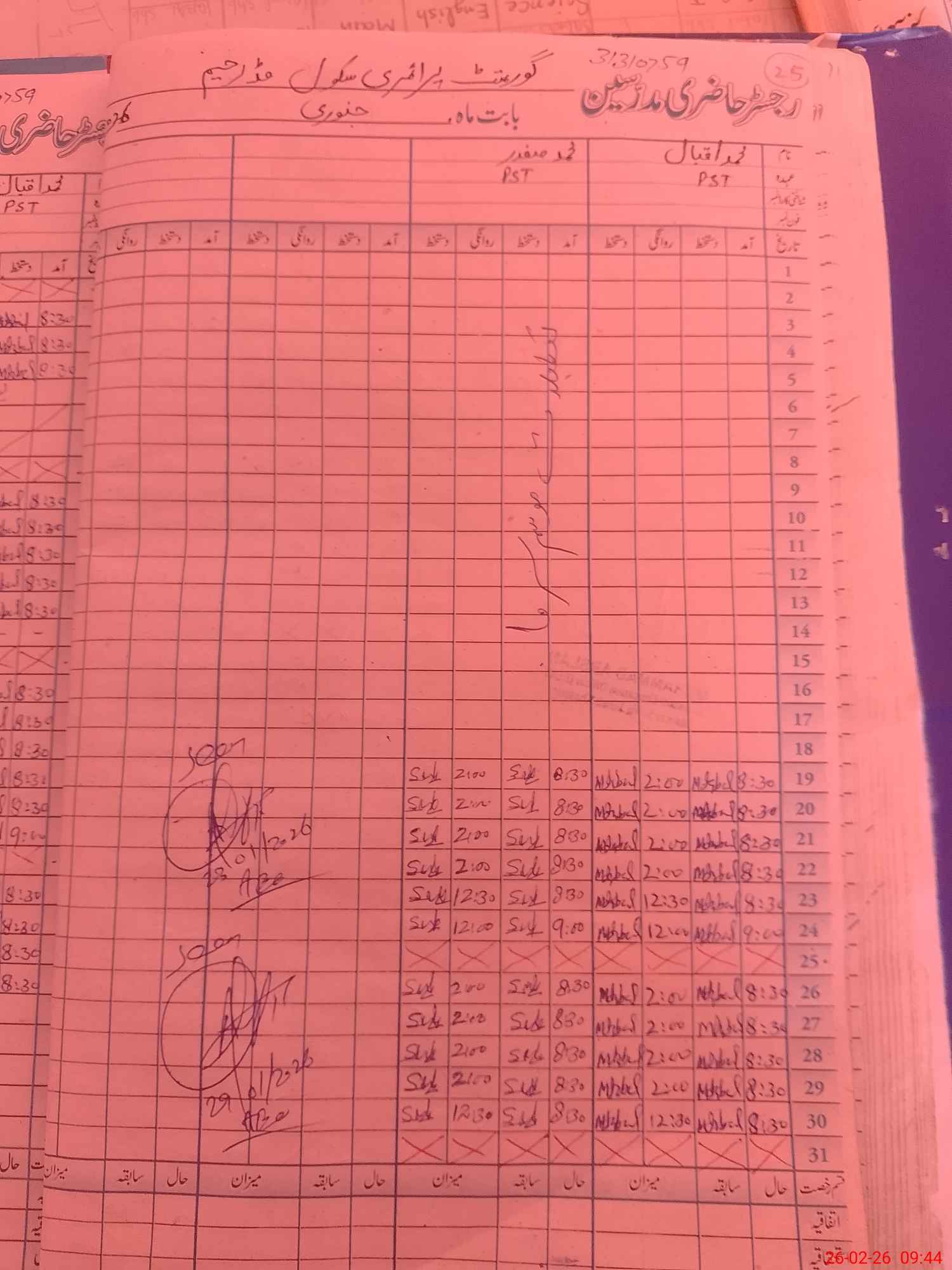 | Name: MU**** IQ**** Designation: (School Headmaster's/Headmistress's) PST Phone/Cell Number: 03**** |
