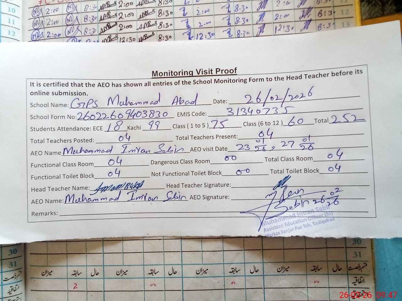 | EMIS Code: 31340735 | Name of School: GPS MUHAMMAD ABAD | |||