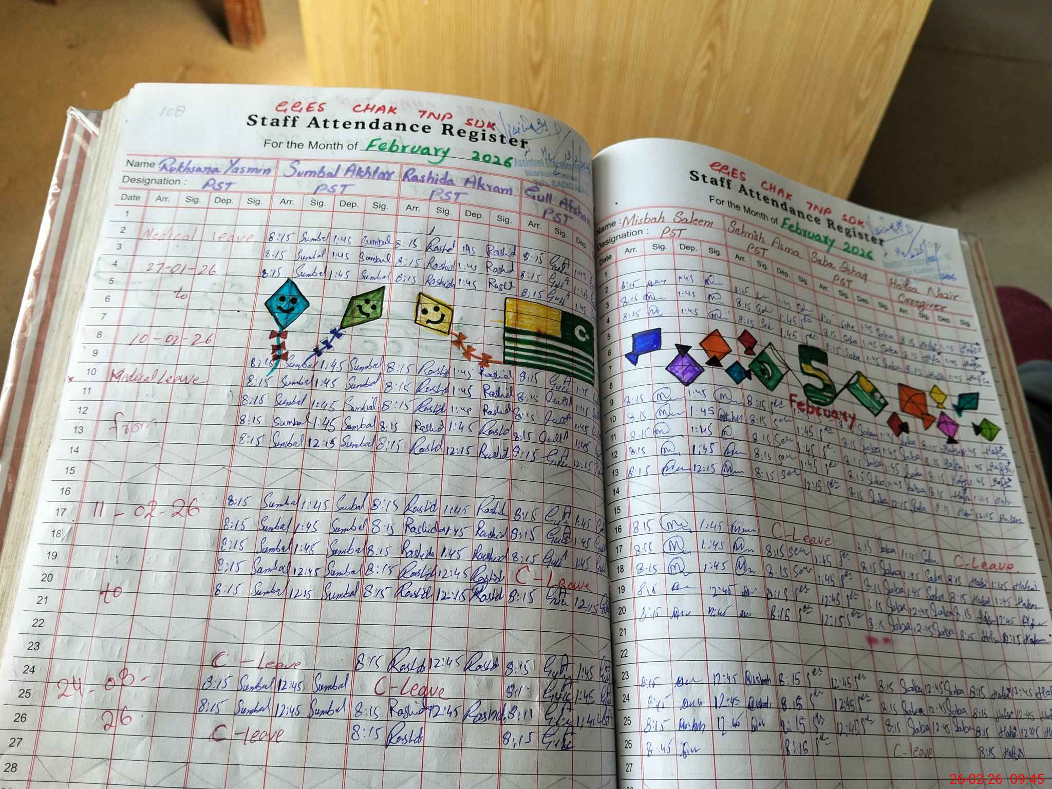 | Leave | Duty | Absent | Maternity | Medical | Ex- Pak |