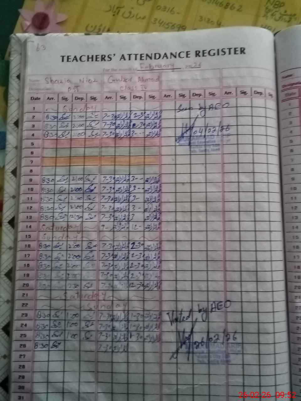 | Name: Sa**** Pa**** Designation: (School Headmaster's/Headmistress's) PST Phone/Cell Number: 03**** |