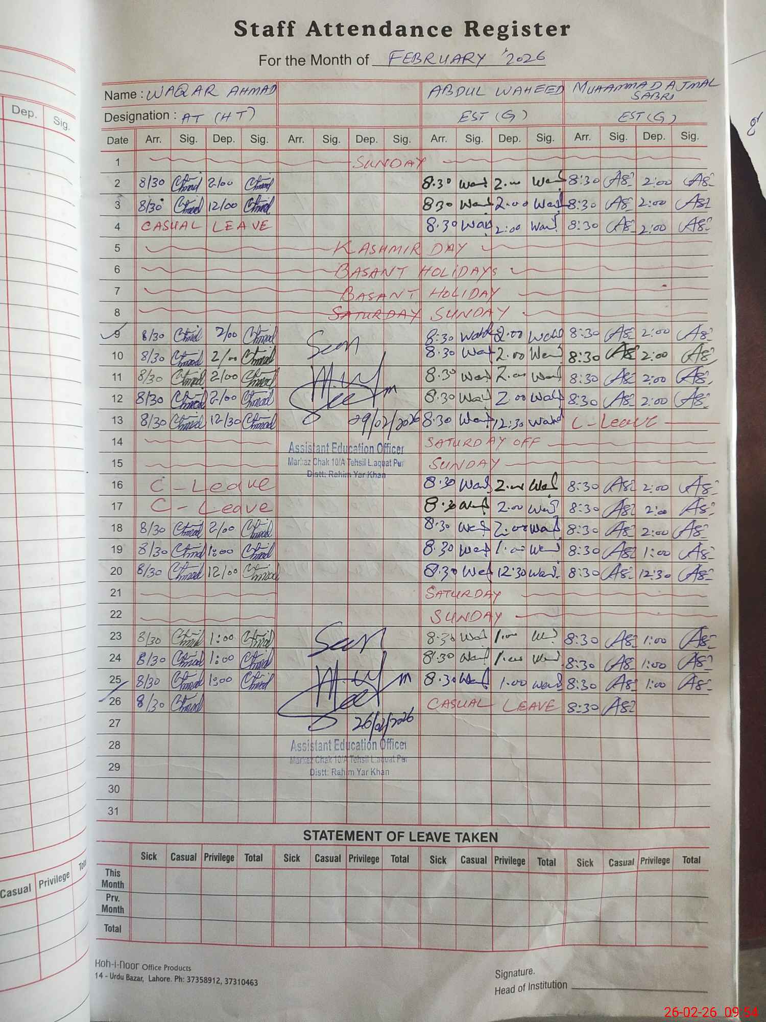 | 31**** | Ab**** Wa**** | EST (Math) | Regular | 0 | 0 | 0 | 0 | 0 | 0 | 0 | 0 | 0 | Casual |