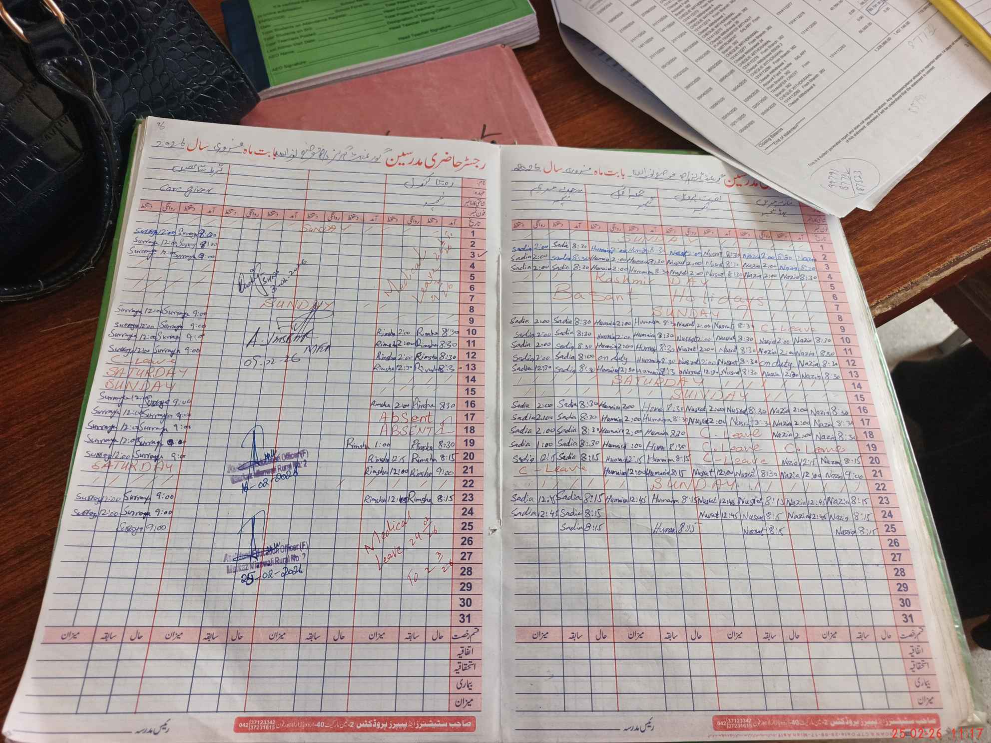 | Leave | Duty | Absent | Maternity | Medical | Ex- Pak |