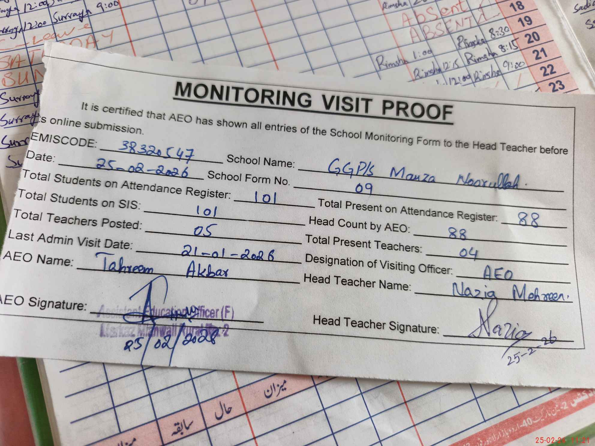 | EMIS Code: 38320547 | Name of School: GGPS MAUZA NOOR ULLAH | |||