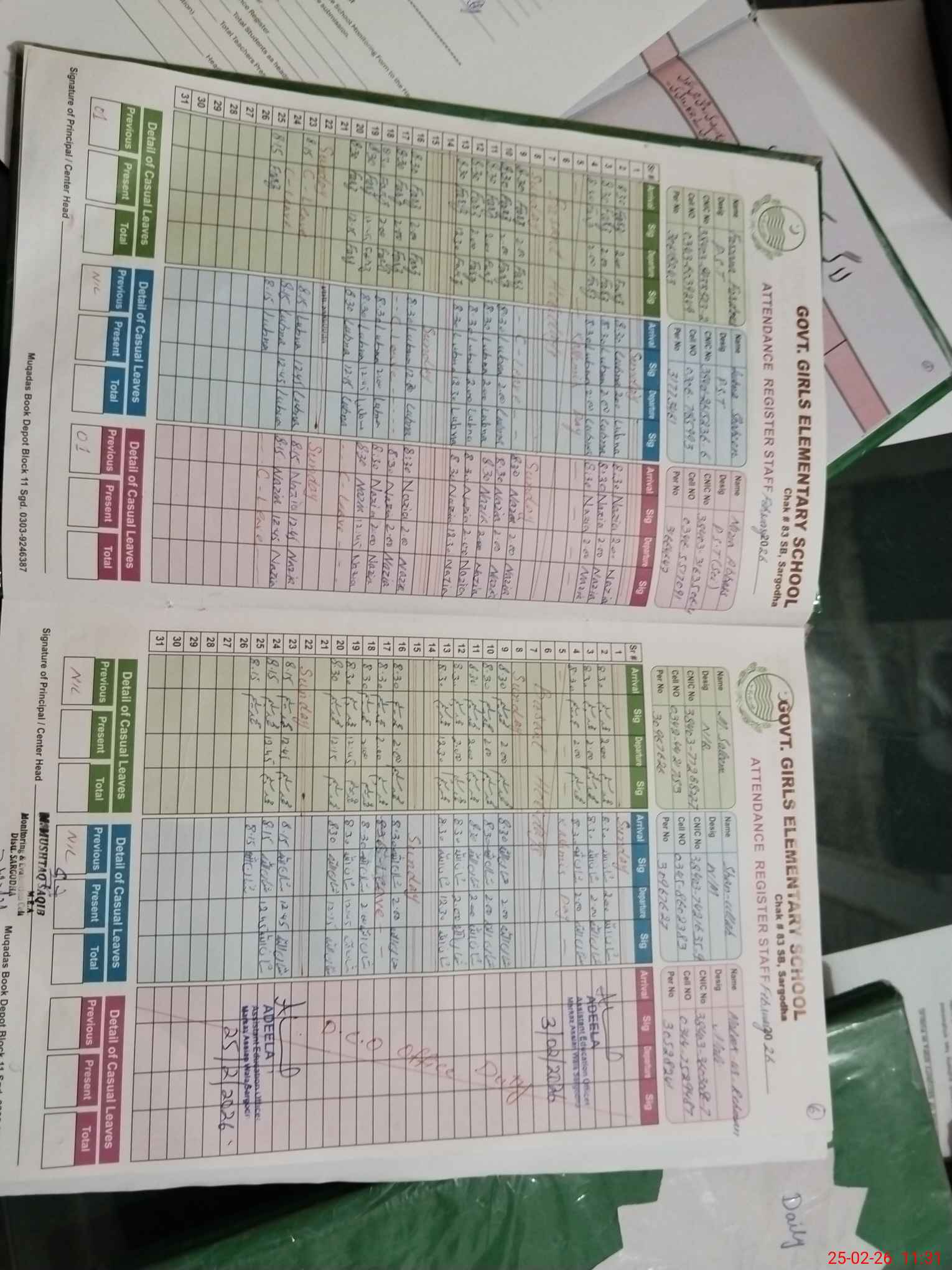 | CNIC | Full Name | Designation | R/C | Absence During Last Calender Month |